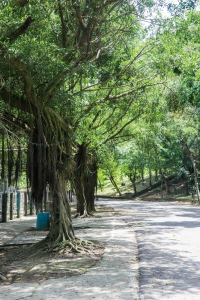台灣水牛城,佔地18公頃,從入口處到餐廳長達1500公尺,兩旁林木茂盛,台灣楓香欖仁、百年刺桐、水黃皮紫艷荊等勾勒出「綠色隧道」景緻,行經此地令人流連忘返。